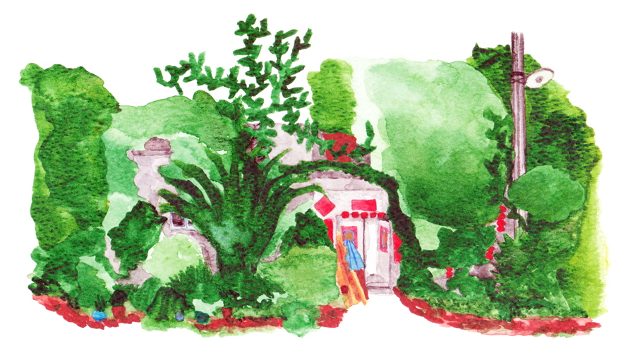 "You've made it this far, do come in for a cuppa tea", August 2025 (watercolour painting for The Keyhole, 2018)