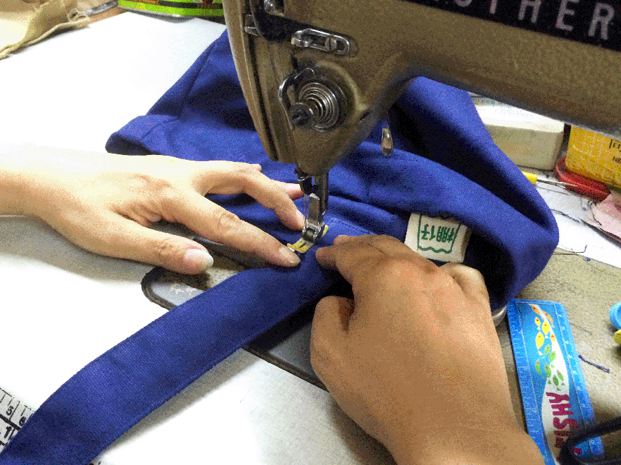 Ms Hui making a bag for Spring Workshop, Pang Jai, 2017